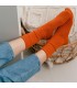 Skarpetki wełniane w prążki art. 093 TF050 pomarańczowe