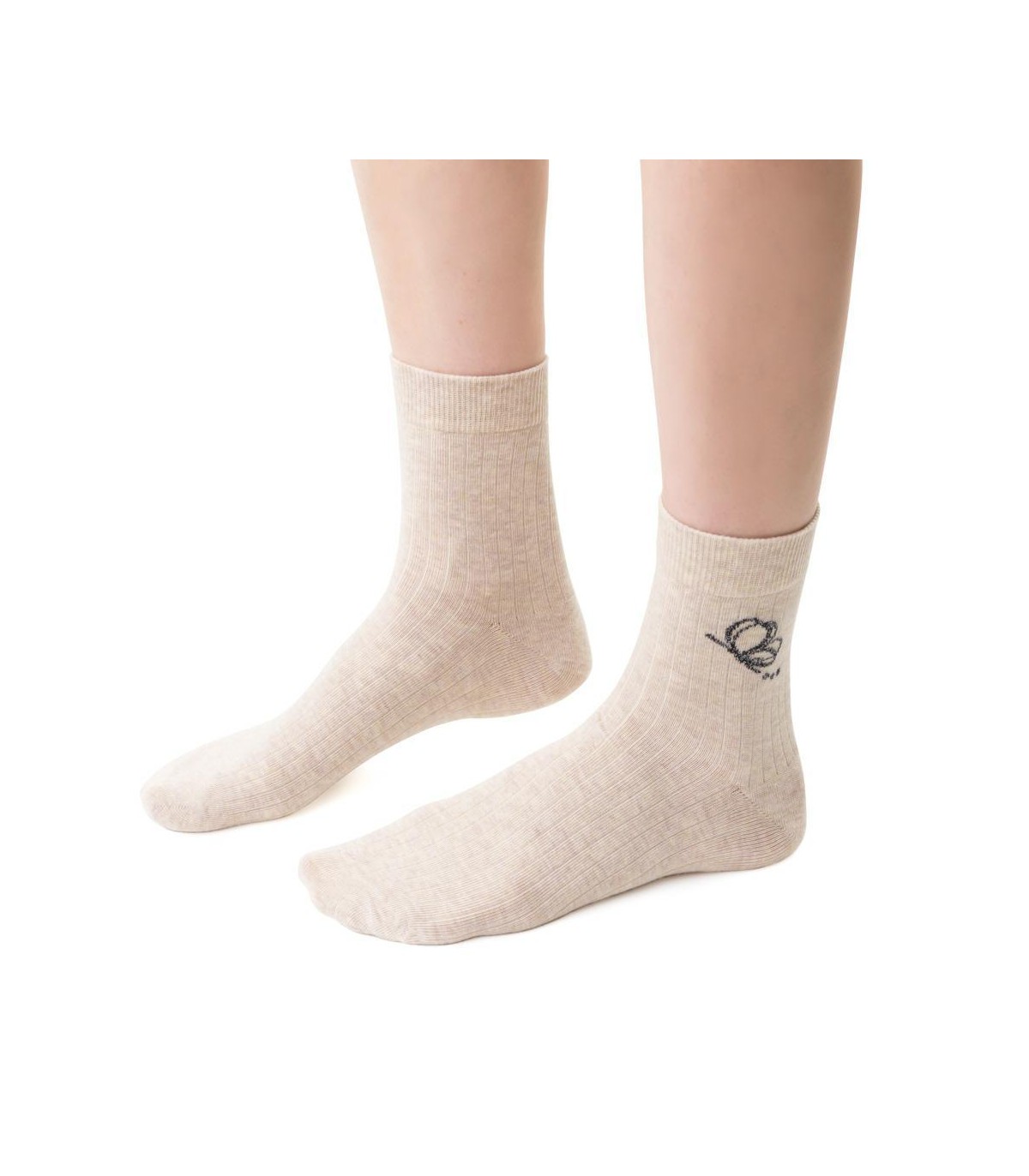 Skarpetki damskie w prążek z kwiatem art. 099 DP072 melanż beż