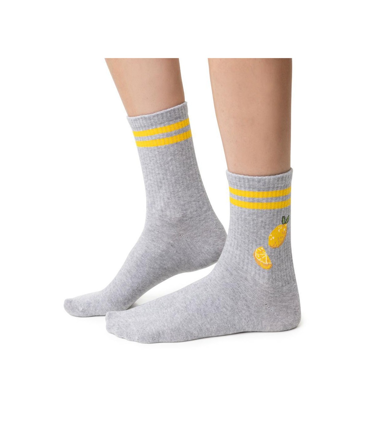 Skarpetki damskie z cytrynką art. 099 DP088 melanż szare