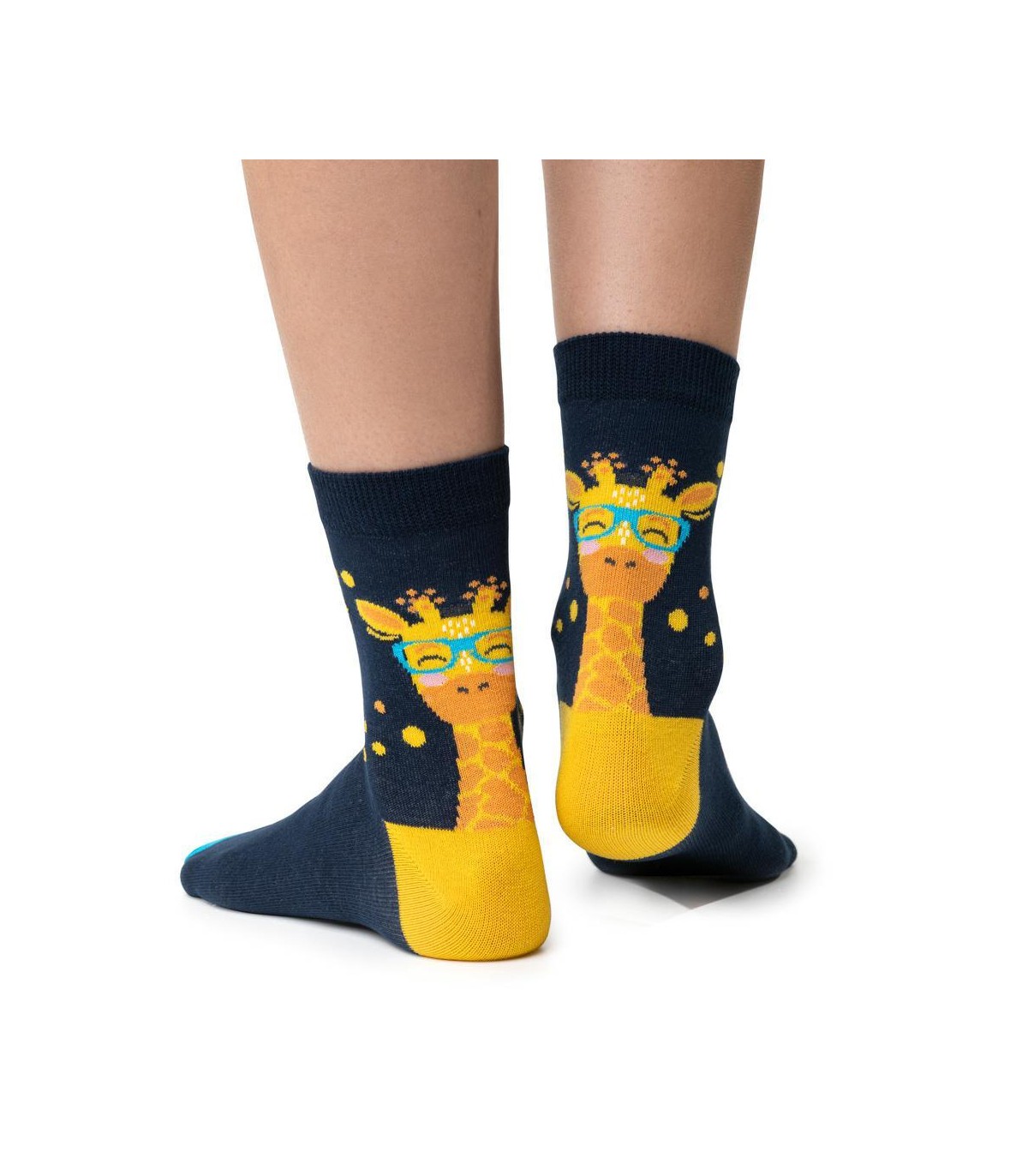 Skarpetki damskie z żyrafą art. 099 DR034 granatowe