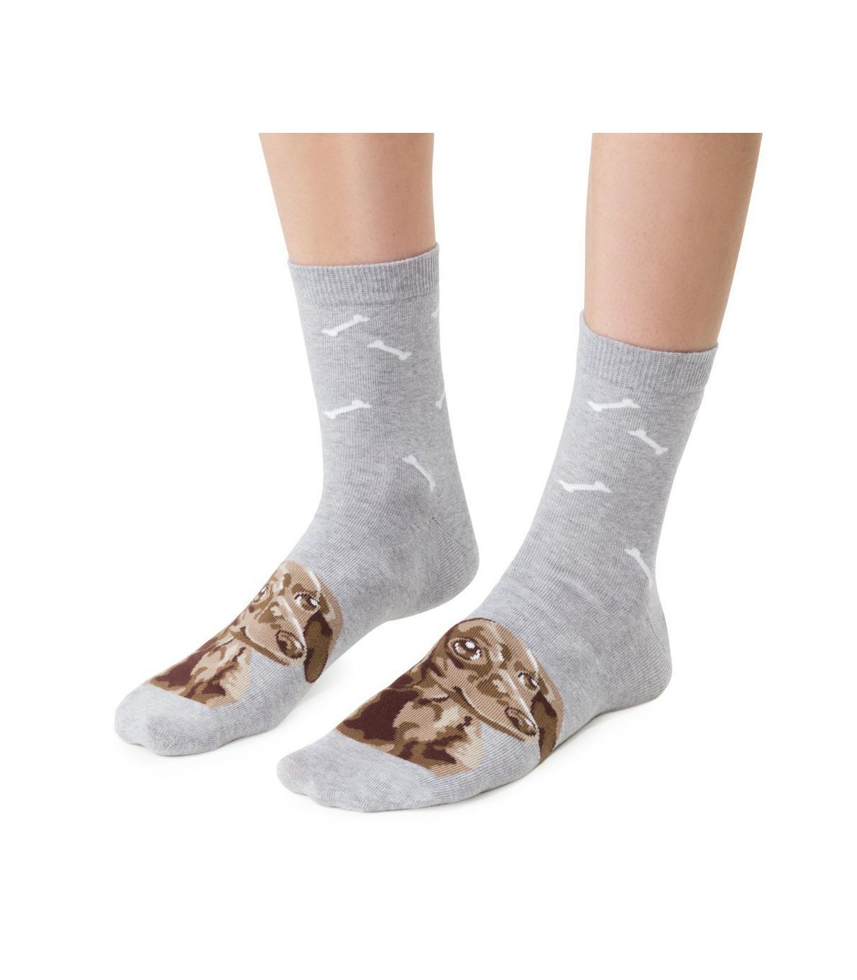 Skarpetki damskie z pieskiem art. 099 DR082 melanż szare