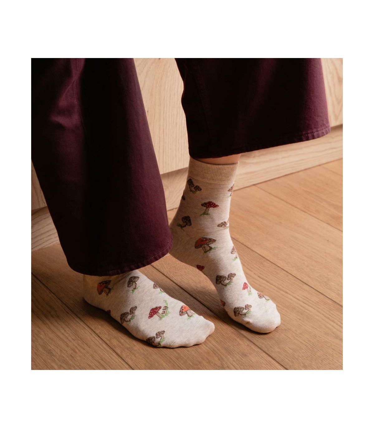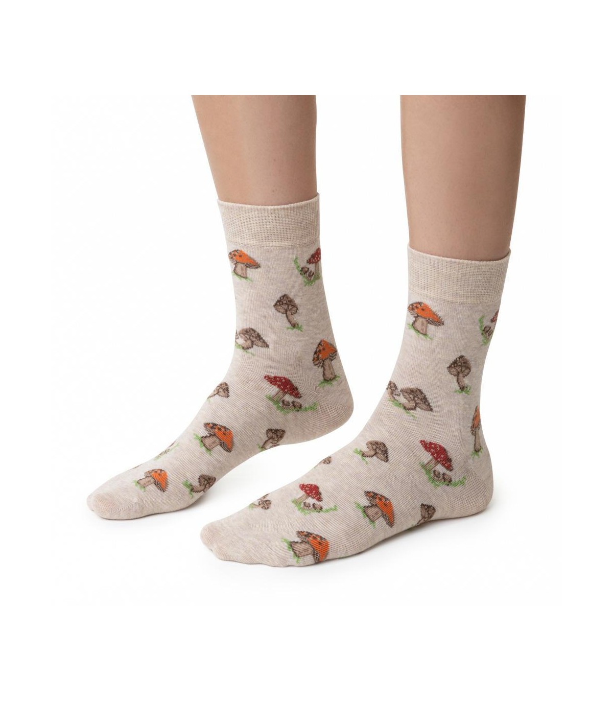 Skarpetki damskie w grzybki art. 099 DR095 melanż beż
