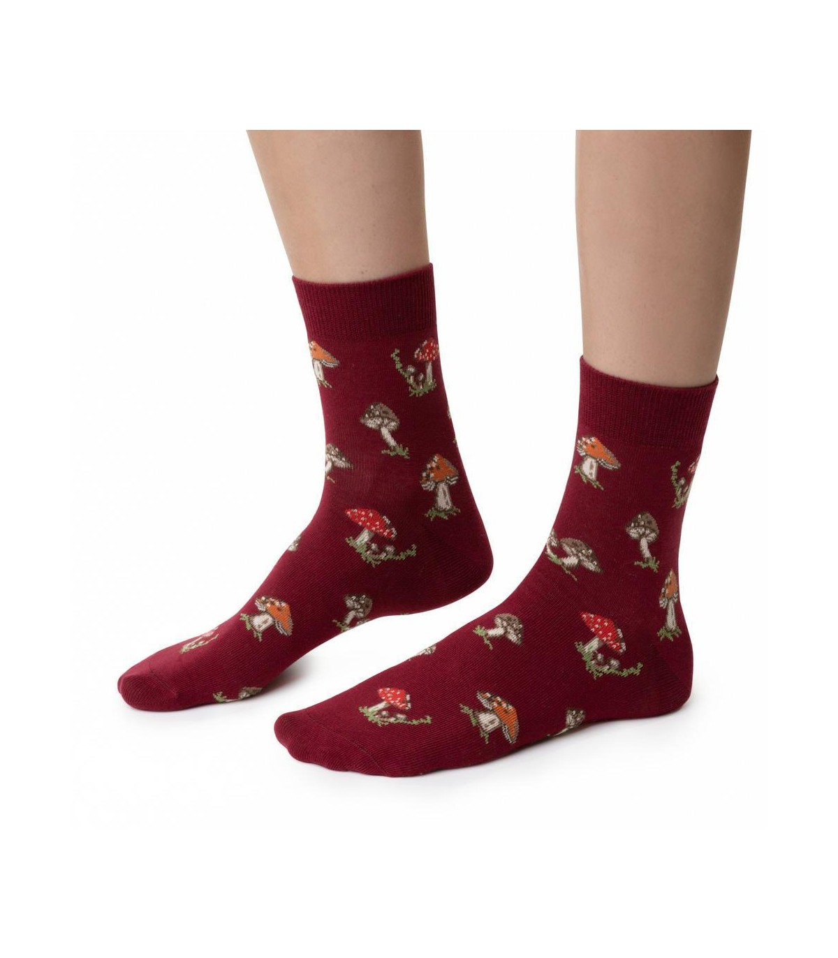 Skarpetki damskie w grzybki art. 099 DP096 bordowe