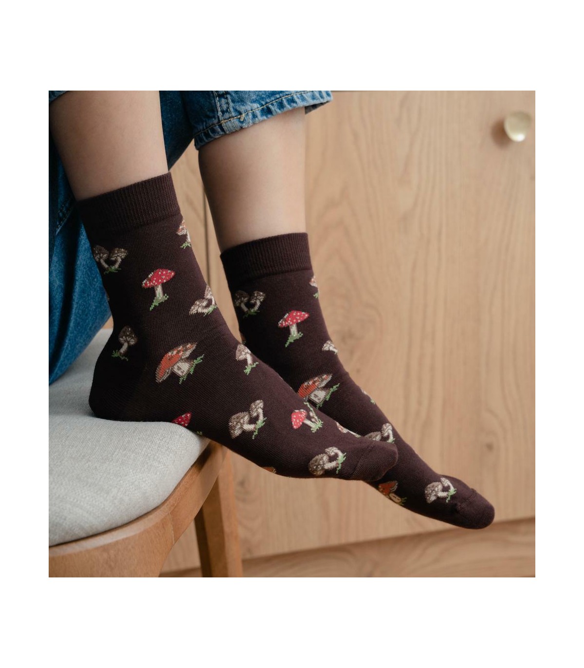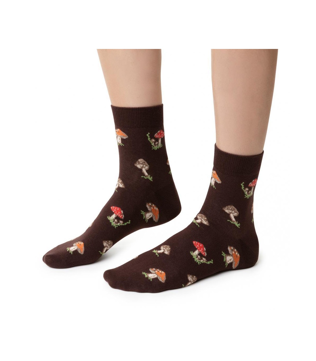 Skarpetki damskie w grzybki art. 099 DP097 brązowe