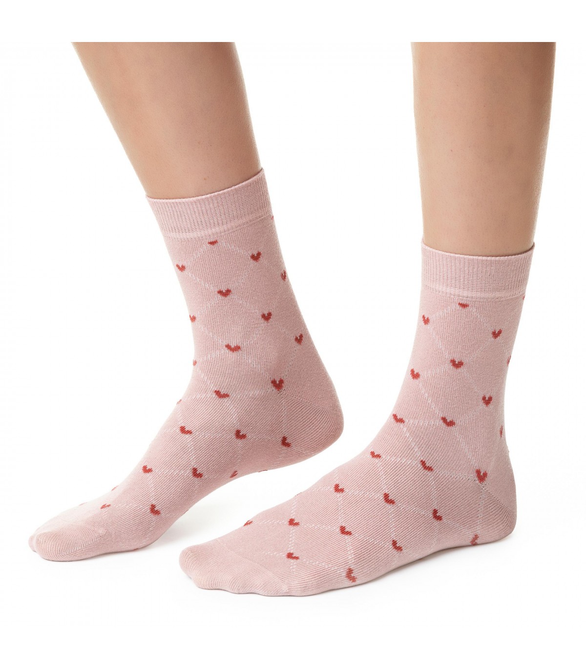 Skarpetki damskie w serduszka art. 099 DP099 różowe