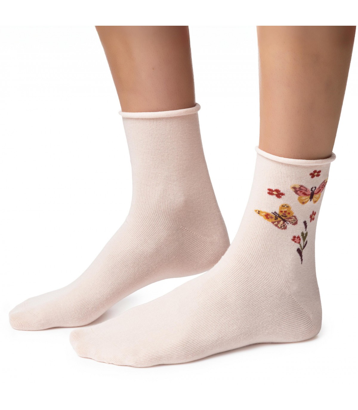 Skarpetki damskie w motylki art. 099 DR089 jasno różowe