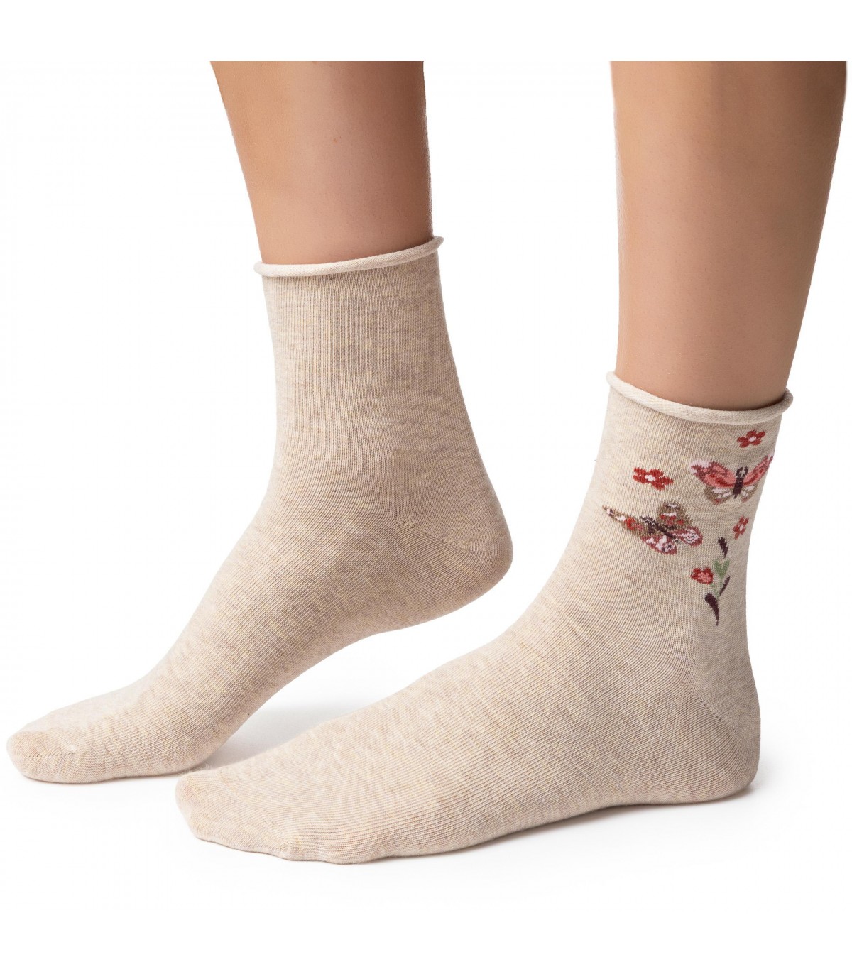 Skarpetki damskie w motylki art. 099 DP091 melanż jasny beż