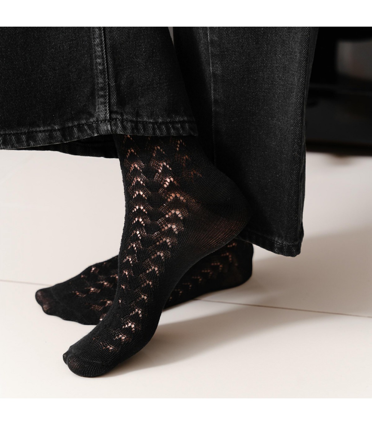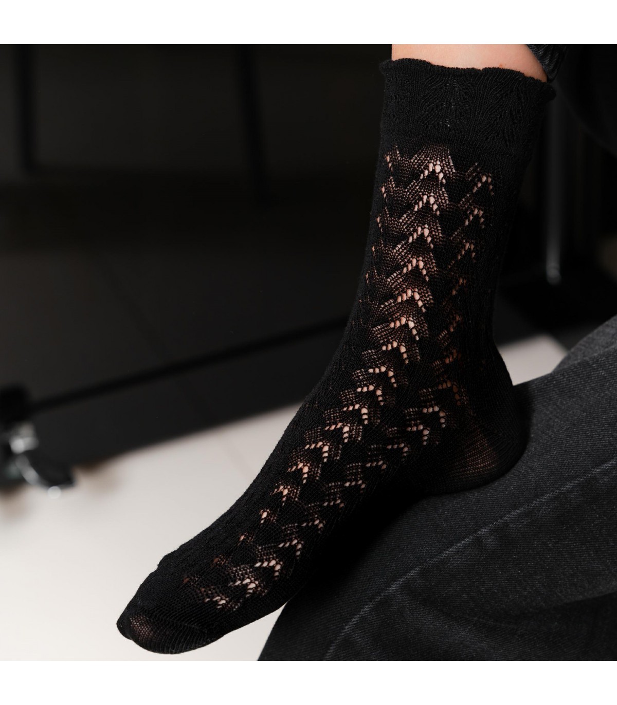Art. 205 FU004 38-40 CZARNY - AŻUROWE SKARPETKI DAMSKIE