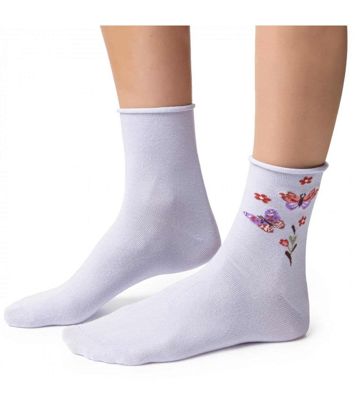 Skarpetki damskie w motylki art. 099 DP090 fioletowe