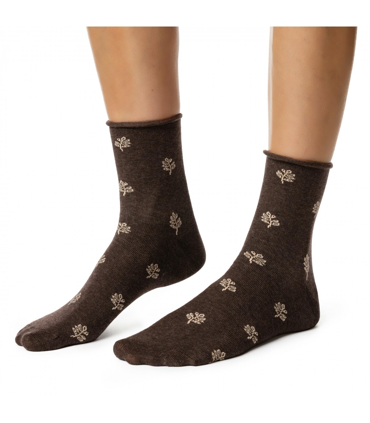 Skarpetki damskie w kwiaty - bezuciskowe art. 099 DP110 melanż brąz