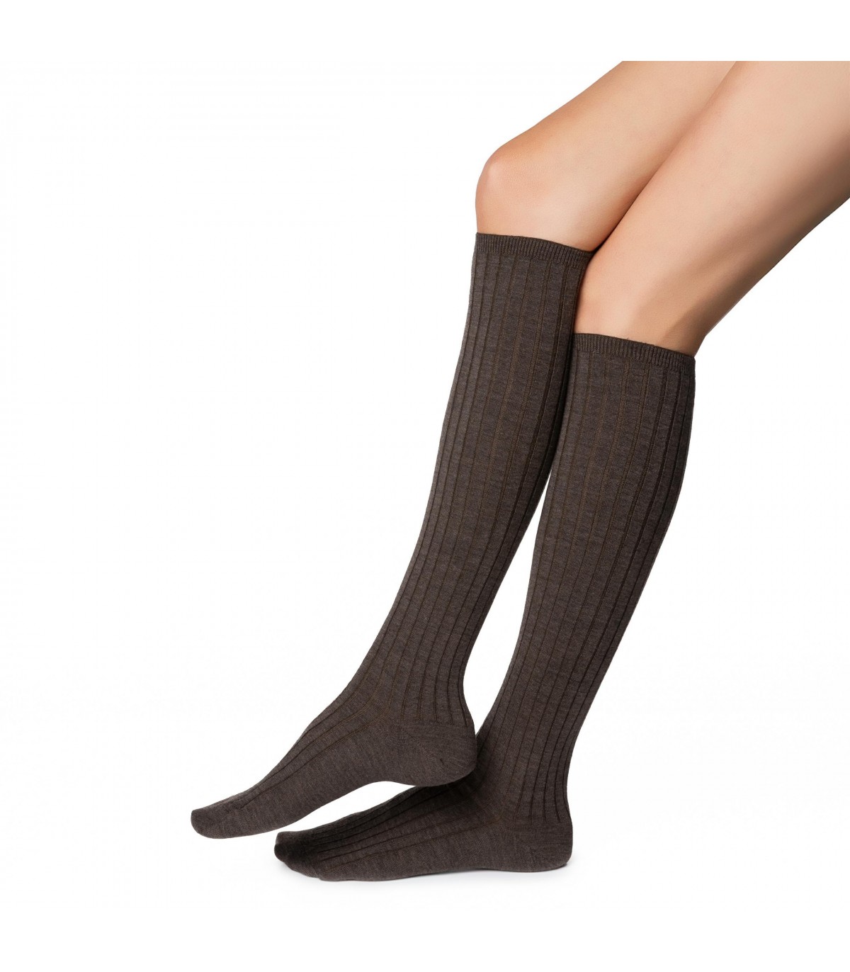 Podkolanówki damskie z wełny merino w prążek art. 130 ER009 melanż brąz- w prążek