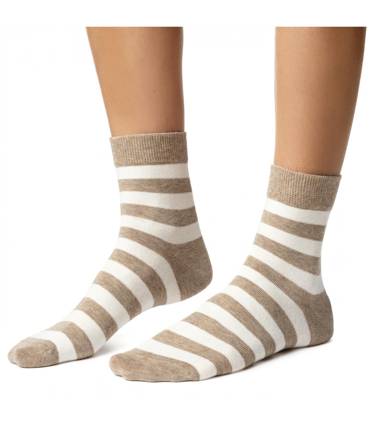 Skarpetki damskie w paski art. 099 DP134 beżowe
