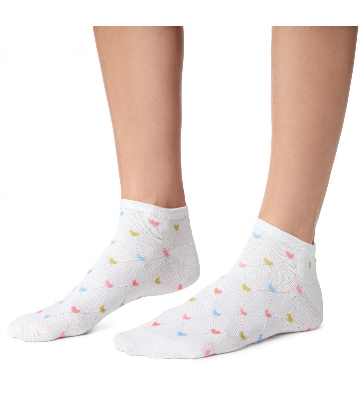 Stopki damskie wzorowane - serduszka art. 114 KG178 białe