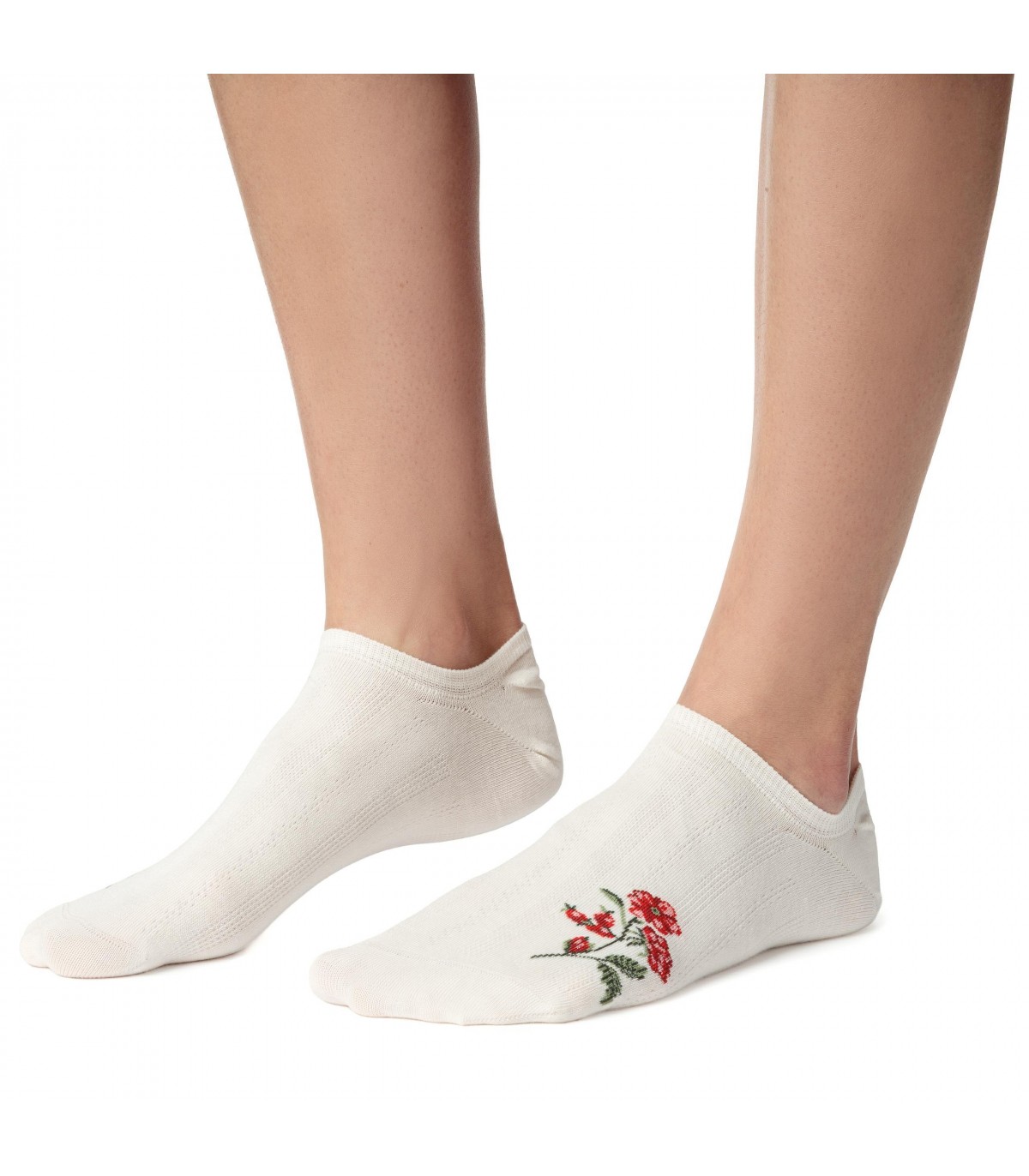 Stopki damskie w kwiaty art. 017 OY042 ecru