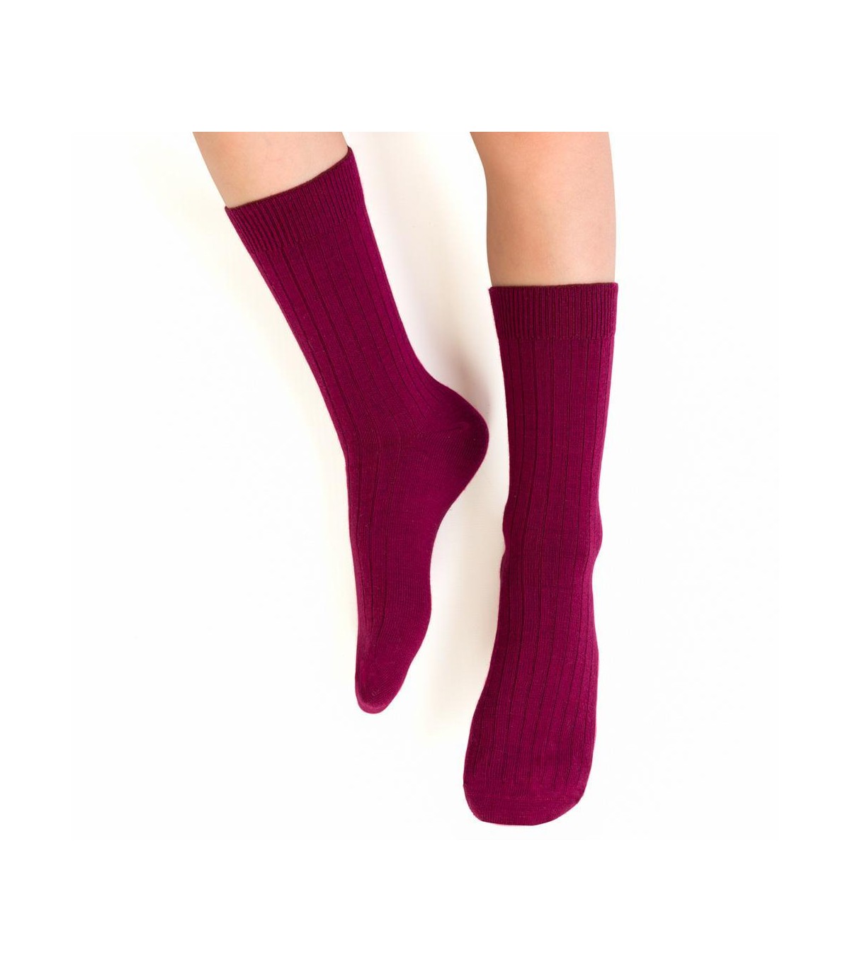 Skarpetki z wełny merino bezuciskowe w prążek art. 130 GD018 bordowe