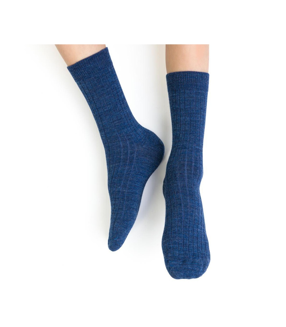 Skarpetki z wełny merino bezuciskowe w prążek art. 130 GD017 jeans