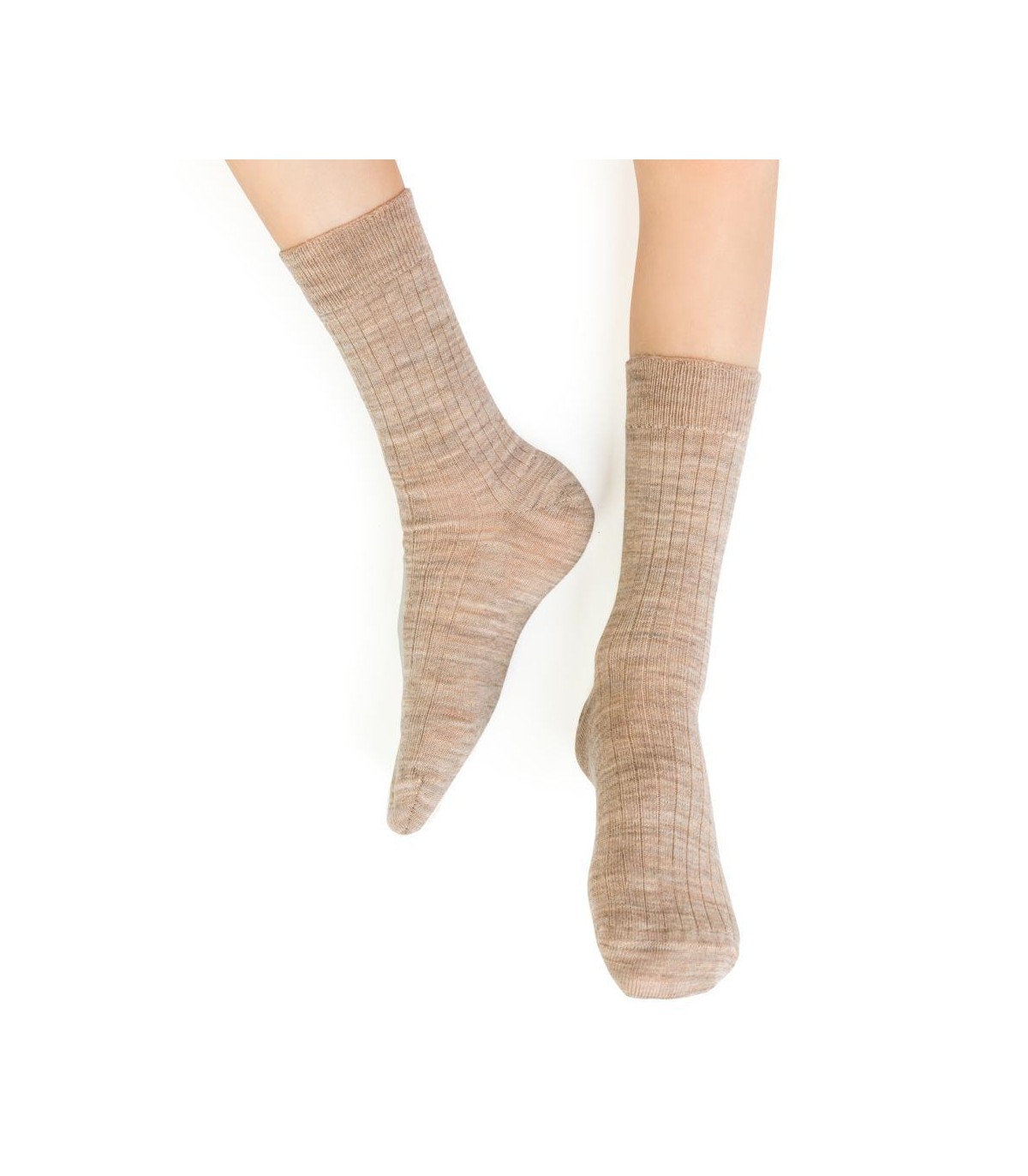 Skarpetki z wełny merino bezuciskowe w prążek art. 130 MD024 melanż jasny beż