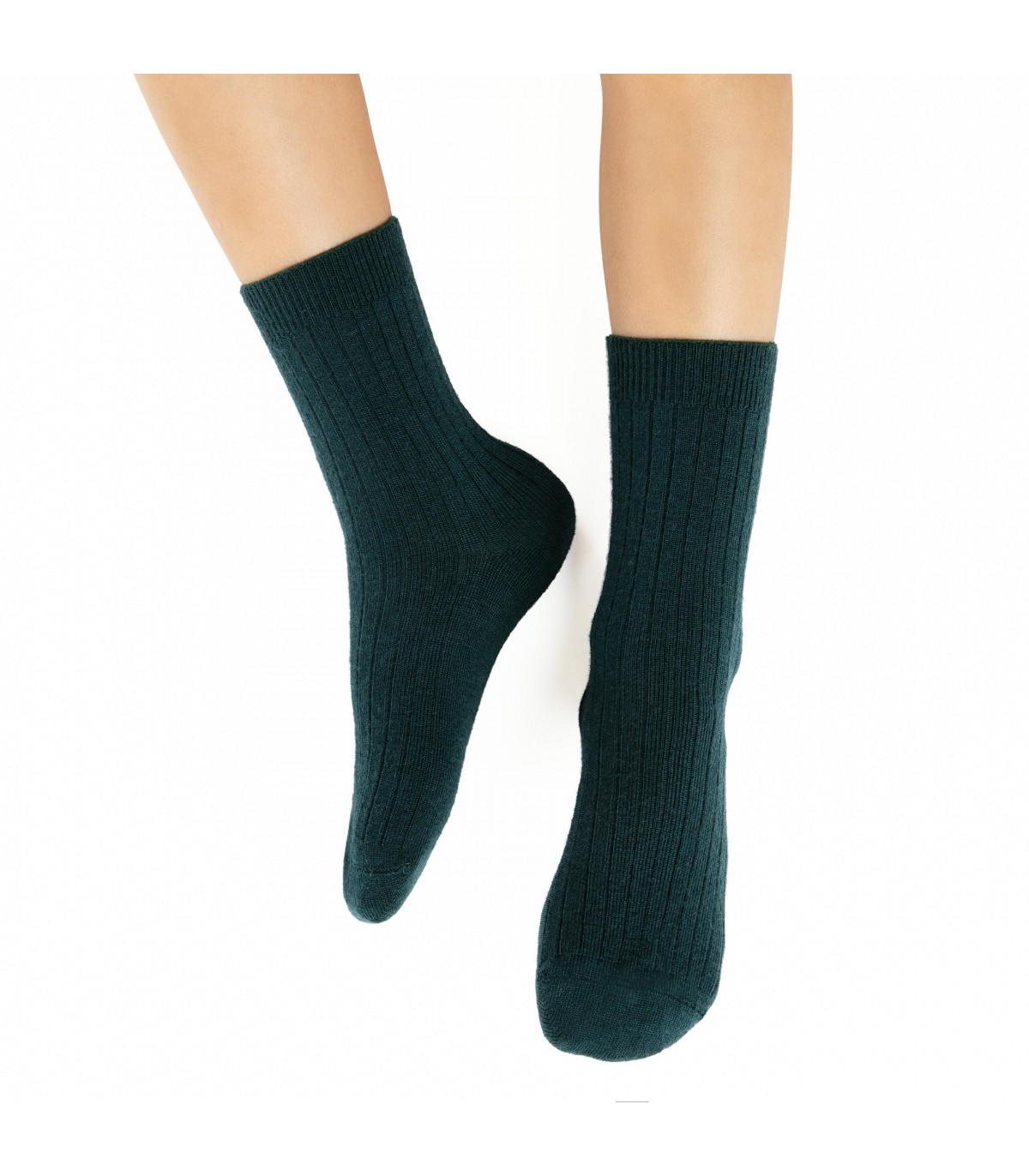 Skarpetki z wełny merino bezuciskowe w prążek art. 130 GD035 zielone