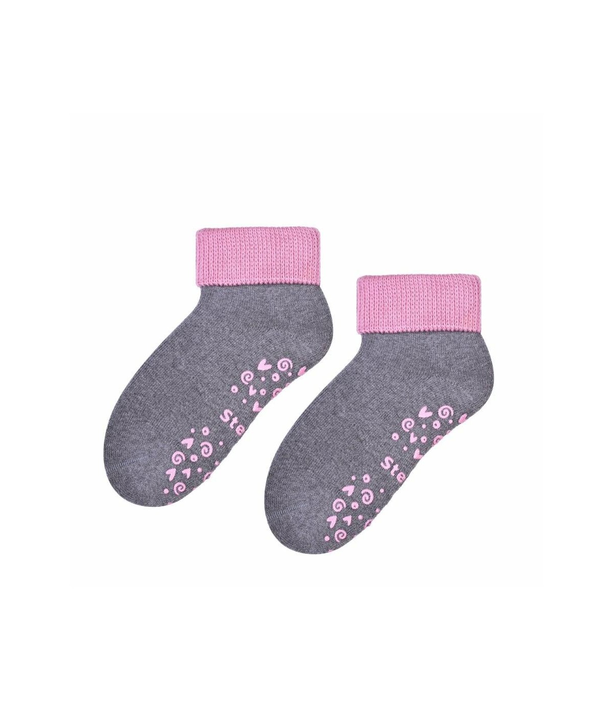 155 to ciepłe skarpety frotte z ABS-em dla młodszych dzieci - model z antypoślizowym, żelowym nadrukiem zaprojektowany został jako alternatywa dla łapci - wykończone wywijanym ściągaczem - idealne na sezon jesienno-zimowy - wykonane z wysokiej jakości przędzy bawełnianej - produkt oferowany jest w różnych zestawieniach kolorystycznych - dostępne rozmiary od 20 do 25 skład: bawełna 82% poliamid 16% elastan 2%