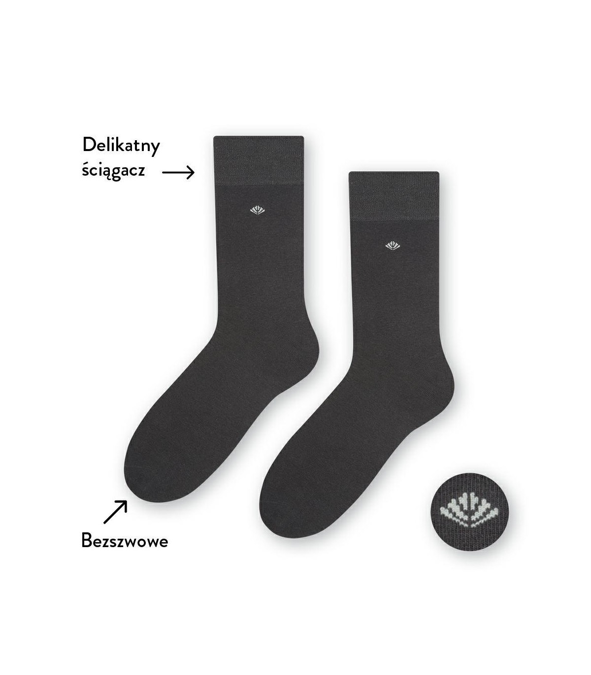 Skarpety garniturowe gładkie z małym znaczkiem art.056 H097 grafitowe