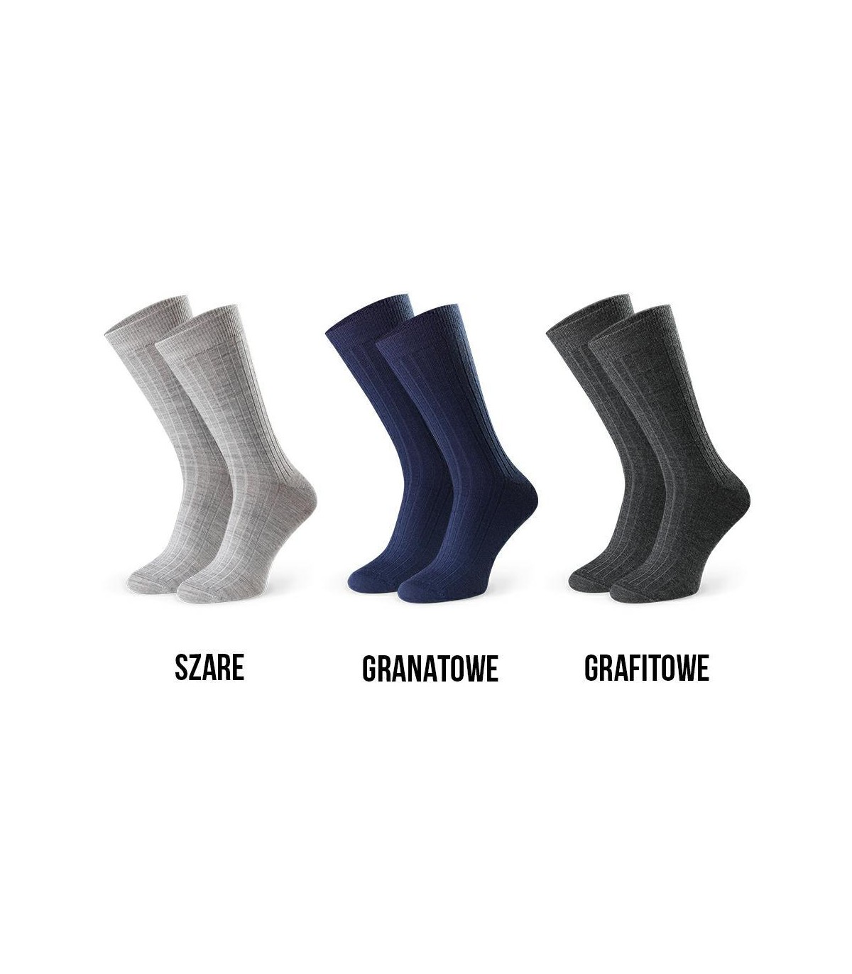 175 to box, który składa się z trzech par skarpet wykonanych z wełny merynosów - skarpety są bezuciskowe - model w prążki i bezszwowe - właściwości produktu: doskonale regulują temperaturę; idealnie dopasowane, delikatne dla skóry, zapewniają komfort nawet przy długim noszeniu; materiał świetnie wchłania wilgoć, a także włókna wełny Merino działają bakteriobójczo - kolory w zestawie: melanż szary, melanż grafit, granatowy - zestawy dostępne w rozmiarach: 41-43 i 44-46 skład: wełna merino 79% poliamid 20% elastan 1% POBIERZ ZDJĘCIE PRODUKTOWE