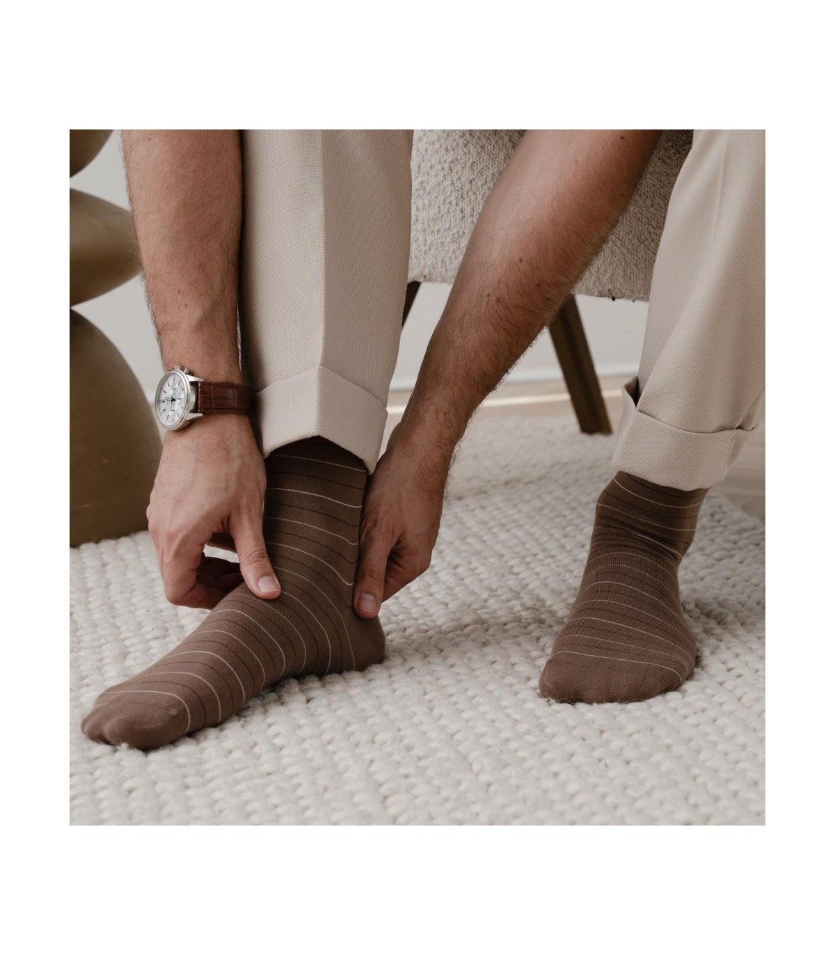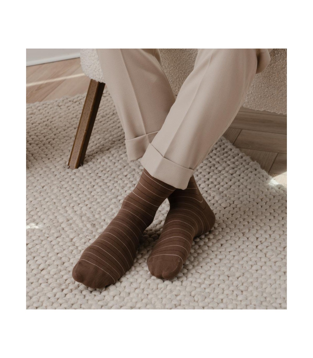 Skarpety garniturowe w paski art.056 IC265 jasno brązowe